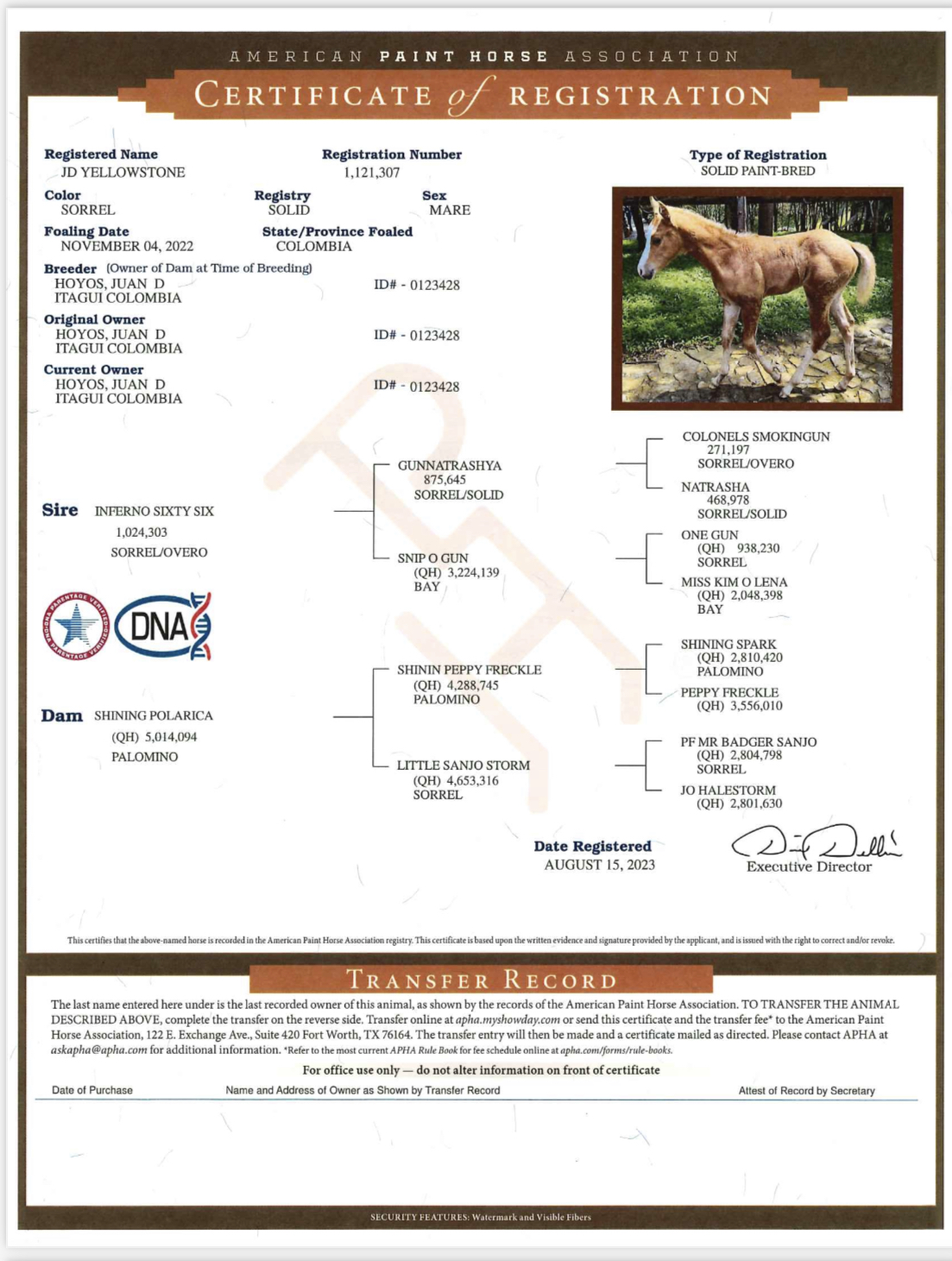 Certificado AQHA y APHA